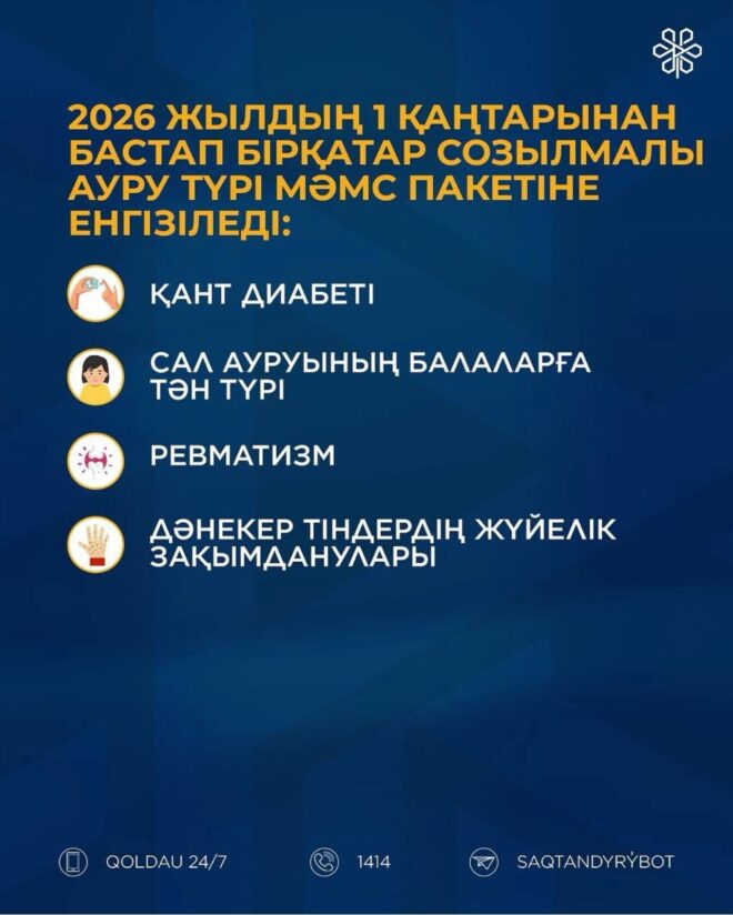 Диагностика саласындағы мемлекеттік кепілдіктерді кеңейту, халықты медициналық сақтандырумен қамтуды ұлғайту және жүйенің қаржылық тұрақтылығын нығайту — өзгерістердің негізгі бағыттары осындай.