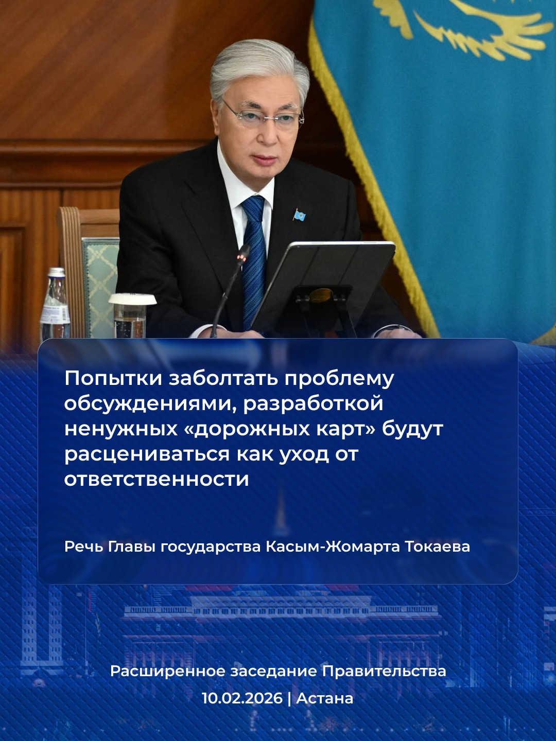 • Президент: «Қазірдің өзінде бір нәрсені күмәнсіз айтуға болады: жұртшылық назарына мүлде жаңа құжат ұсынылып отыр. Бұл құжат мемлекетіміз дамудың даңғыл жолына түскенін, яғни сапалық тұрғыдан жаңа деңгейге көтерілгенін көрсетеді» 10 февраля, 2026