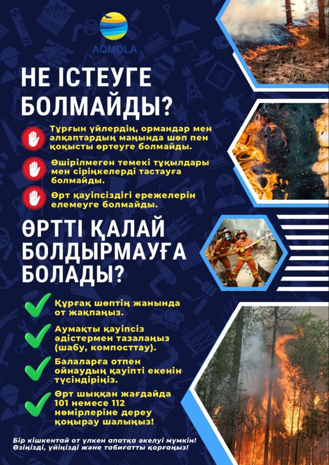 •Өрт қаупі жоғары кезеңде қоқыс пен құрғақ шөпті өртеу.