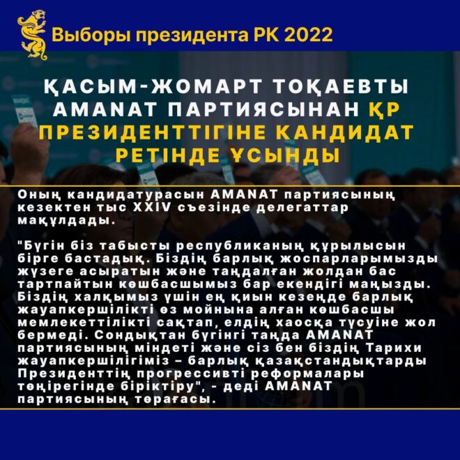 Қасым-Жомарт Тоқаевты AMANAT партиясынан ҚР президенттігіне кандидат ретінде ұсынды