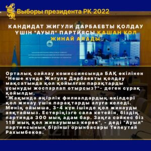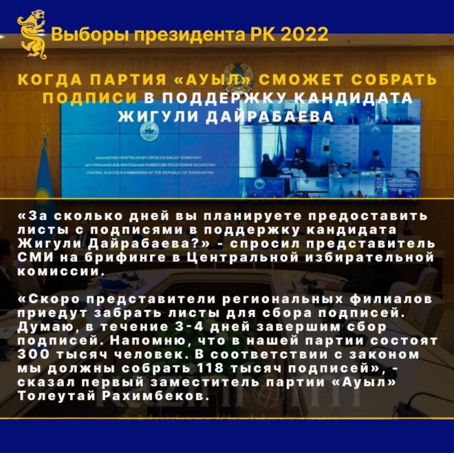 Когда партия «АУЫЛ» сможет собрать подписи в поддержку кандидата Жигули Дайрабаева
