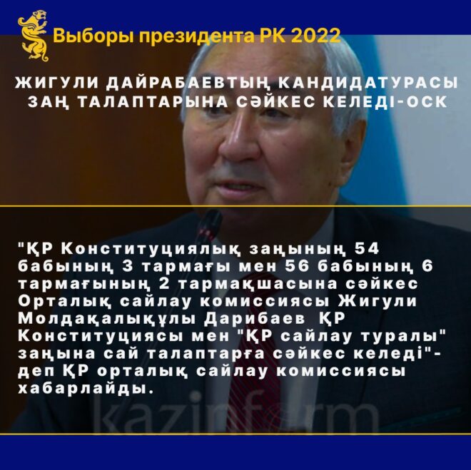 Жигули Дайрабаевтың кандидатурасы заң талаптарына сәйкес келеді-ОСК
