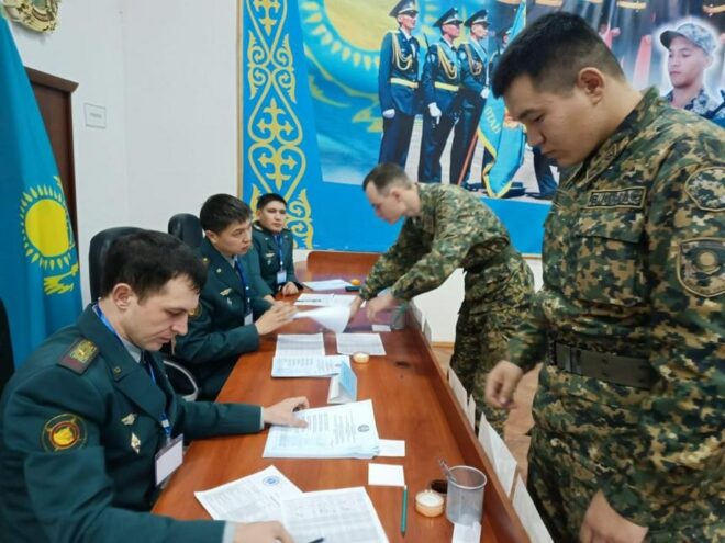 КОКШЕТАУ. КАЗИНФОРМ – Четырем воинским частям, командиры которых обратились с просьбой проголосовать как можно раньше, было разрешено начать голосование с 06.00. Участки в них уже завершили свою работу. Об этом корреспонденту МИА «Казинформ» рассказал председатель Акмолинской областной избирательной комиссии Манарбек Садуов.