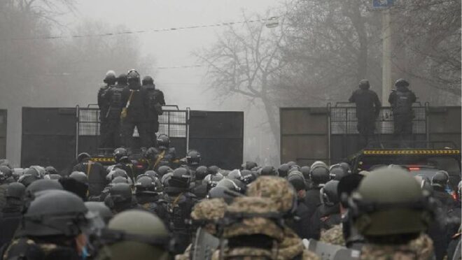 В первых числах января 2022 года на западе Казахстане начались массовые протесты граждан, недовольных ценами на сжиженный нефтяной газ, чем и воспользовались экстремисты, организовавшие широкомасштабный теракт с целью захвата власти. В ряде городов и регионов стали происходить столкновения с полицией и военнослужащими. Особенно тяжелая ситуация была в Алматы, где в ночь с 4 на 5 января активизировавшиеся экстремистские группировки начали вооруженные нападения на акимат, полицию, прокуратуру, КНБ, больницы, телецентр, аэропорт, оружейные магазины и другие объекты важного стратегического значения.