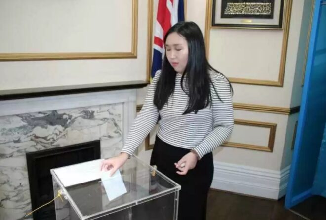 Магистрант Университета Queen Mary Ельнара Сакенова была сегодня первой, кто проголосовал на избирательном участке в Лондоне.