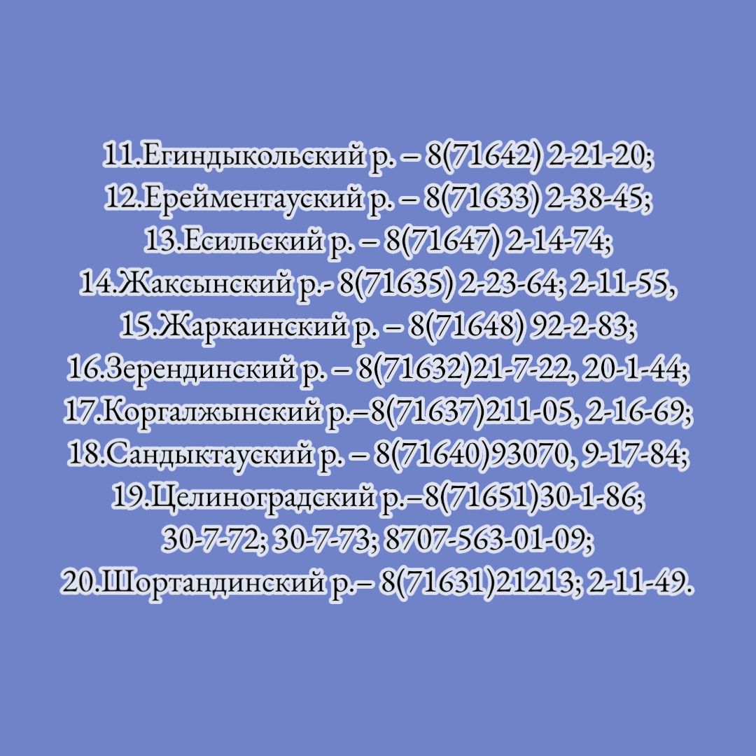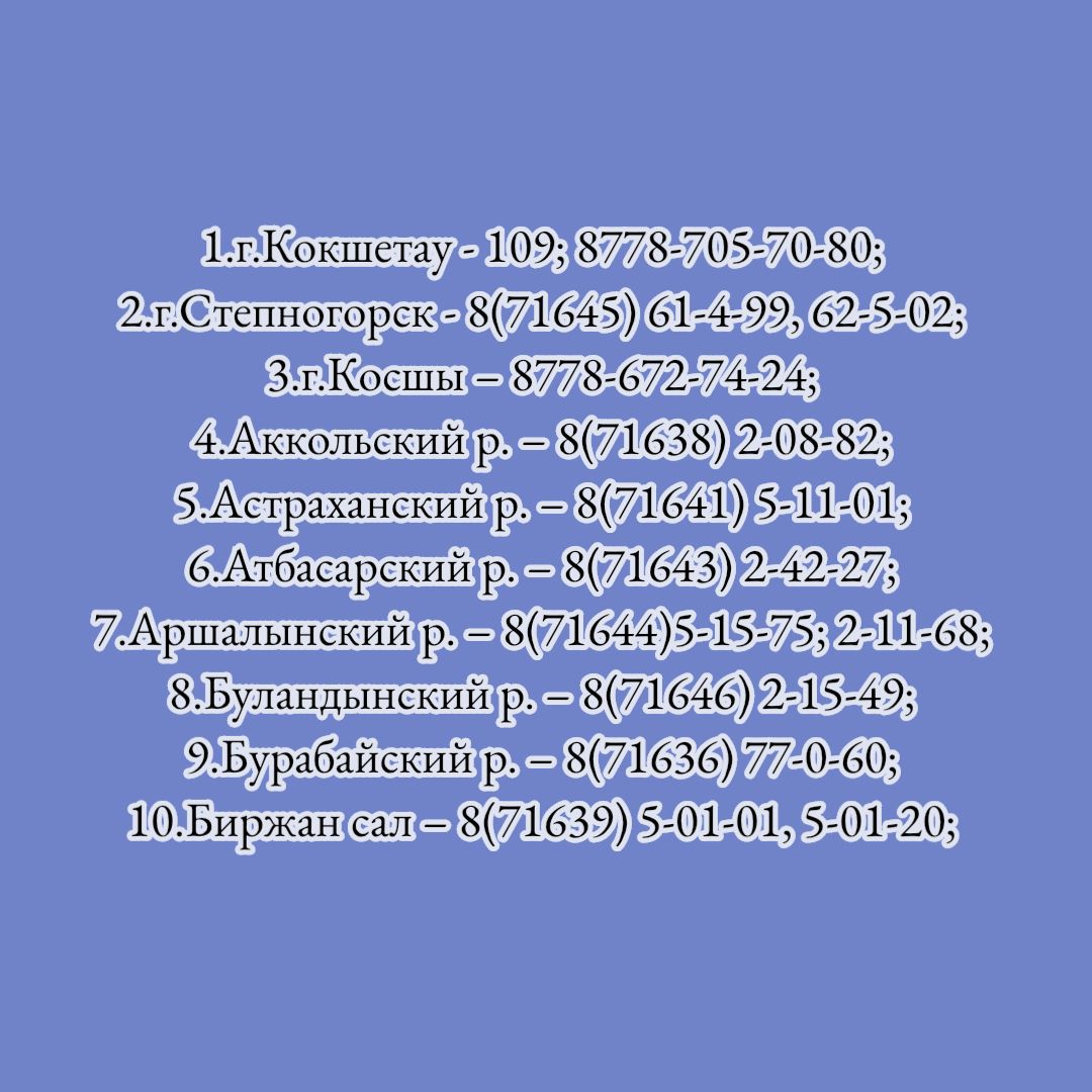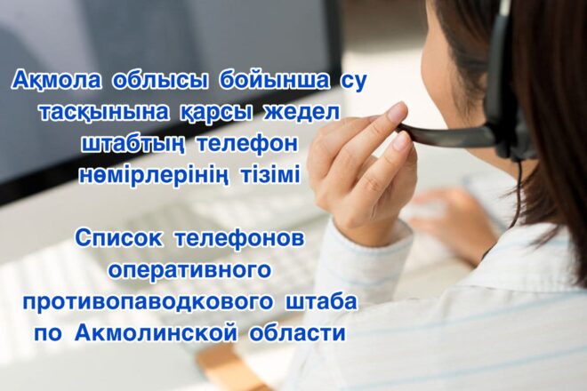 Список телефонов оперативного противопаводкового штаба по Акмолинской области