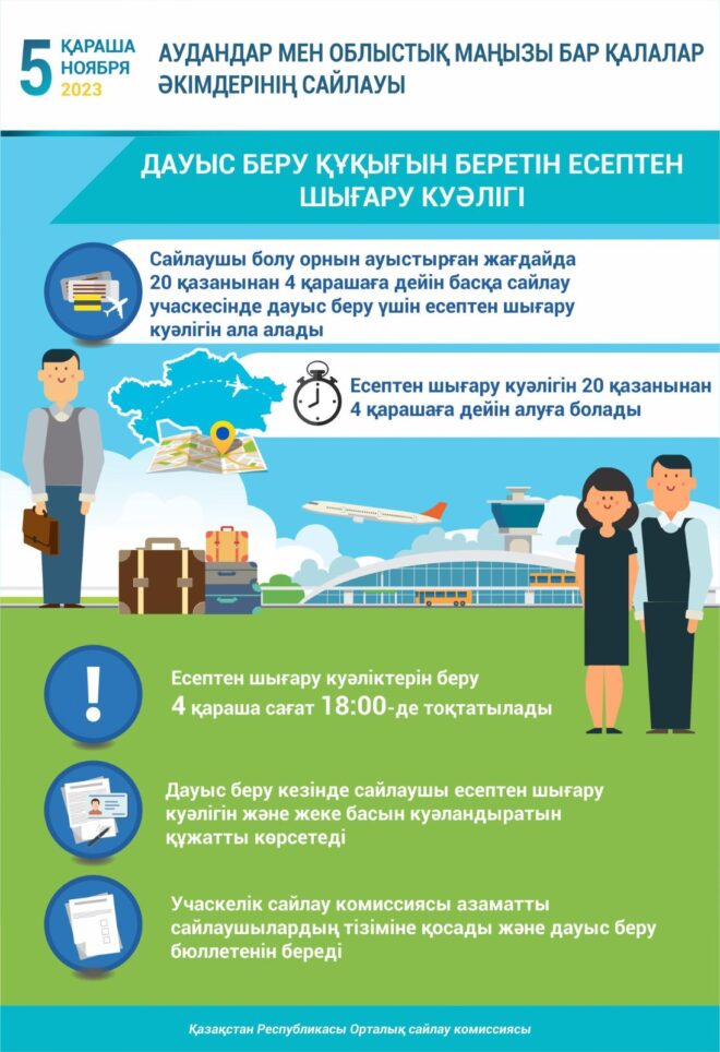 ← Голосование вне избирательных участков Республики Казахстан Қазақстан Республикасының сайлау учаскелерінен тыс жерде дауыс беру →