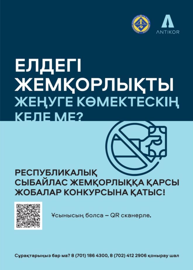 2023 жылғы 25 қыркүйектен «Сыбайлас жемқорлыққа қарсы инновациялық шешімдер» тақырыбында сыбайлас жемқорлыққа қарсы жобалардың республикалық байқауы басаталды.