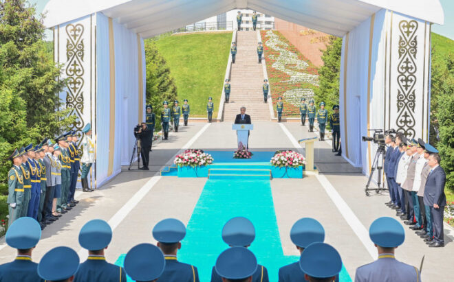 – Для каждого мужчины охрана спокойствия своей страны – священный долг. Великий батыр Бауыржан Момышулы говорил: «Ердің туы – намыс» («Честь – знамя мужчины»). Такие патриотично настроенные и верные своему долгу воины, как вы, вселяют в нас уверенность в светлом будущем Казахстана. Нет никаких сомнений в том, что вы будете хранить верность присяге и неусыпно охранять рубежи страны. Присвоение воинского звания – важная веха в жизни каждого военнослужащего. Как говорил генерал армии Сагадат Нурмагамбетов, «Атақты алғаннан гөрі, оны арқалап жүрген қиын» («Нести славу труднее, чем завоевать ее»). Эти слова знаменитого полководца отражают огромную ответственность, которая возлагается на вас. Всегда будьте достойны славы казахского солдата! – сказал Глава государства.