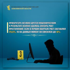 «Қылмыстық ахуал саласында қылмыстардың 6,6% — ға өсуі, оның ішінде алаяқтық жағдайларының 16% — ға артуы байқалады. Прокуратура ықтимал алаяқтық туралы ескертулері бар бейнероликтер мен СМС-ескертулерді тарату арқылы бұл мәселемен белсенді күресуде.