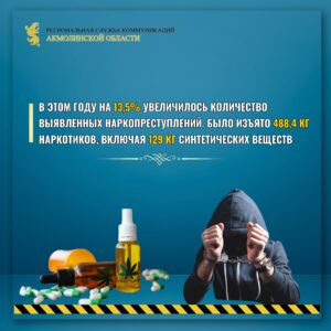 Есірткі қылмыстары прокуратура жұмысының маңызды бөлігі болып қала береді. Биыл анықталған есірткі қылмыстарының саны 13,5% — ға өсті. 488,4 кг есірткі, оның ішінде 129 кг синтетикалық заттар тәркіленді. Ең ірі операциялардың бірі Ерейментау ауданында синтетикалық есірткі өндіретін жасырын есірткі зертханасының жолын кесу болды.
