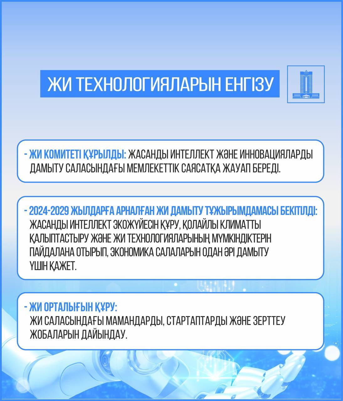 ✔️Айта кету керек, оның негізінде ЖИ негізінде өнімдер жасалуда. Бұл eGov, E-otinish және заң көмекшісі сияқты бағыттардағы IT-көмекшілері.