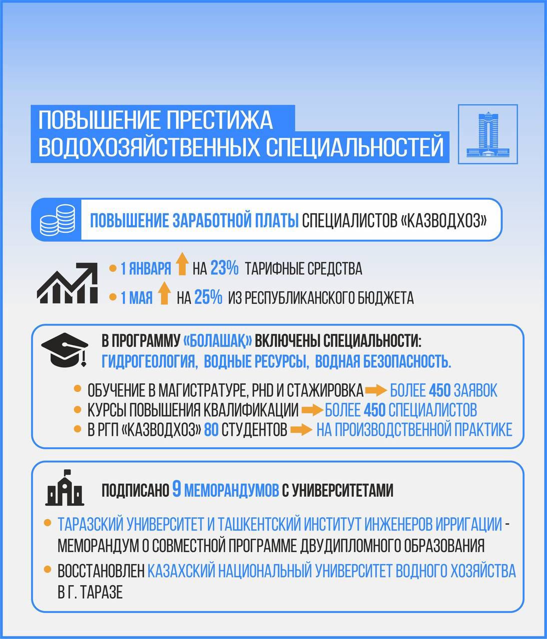 ✔️ Достигнуты договоренности с Кыргызстаном и Узбекистаном о подаче воды в Казахстан через трансграничные реки Шу, Талас и Сырдария. Ведутся переговоры с Китаем по более чем 20 рекам, включая Ертис и Или.