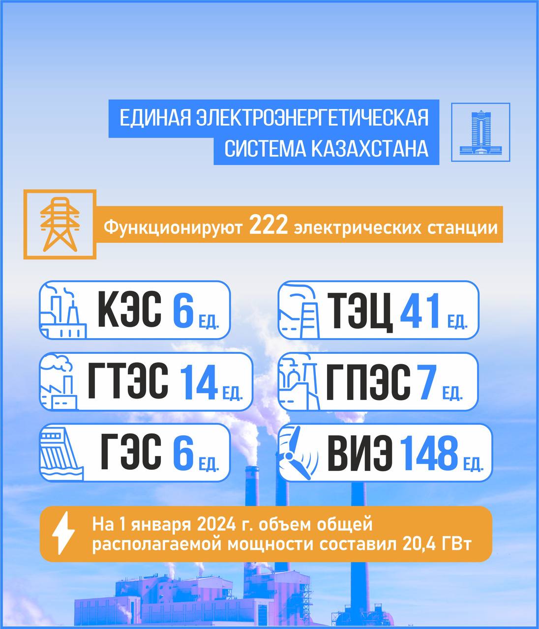 ⚡️ В этом году включен в сеть первый энергоблок мощностью 500 МВт новой генерации на Экибастузской ГРЭС-1, ожидается до конца года ввести еще 65 МВт на Атырауской ТЭЦ, а также 130 МВт на ГРЭС Топар в 2025 году.