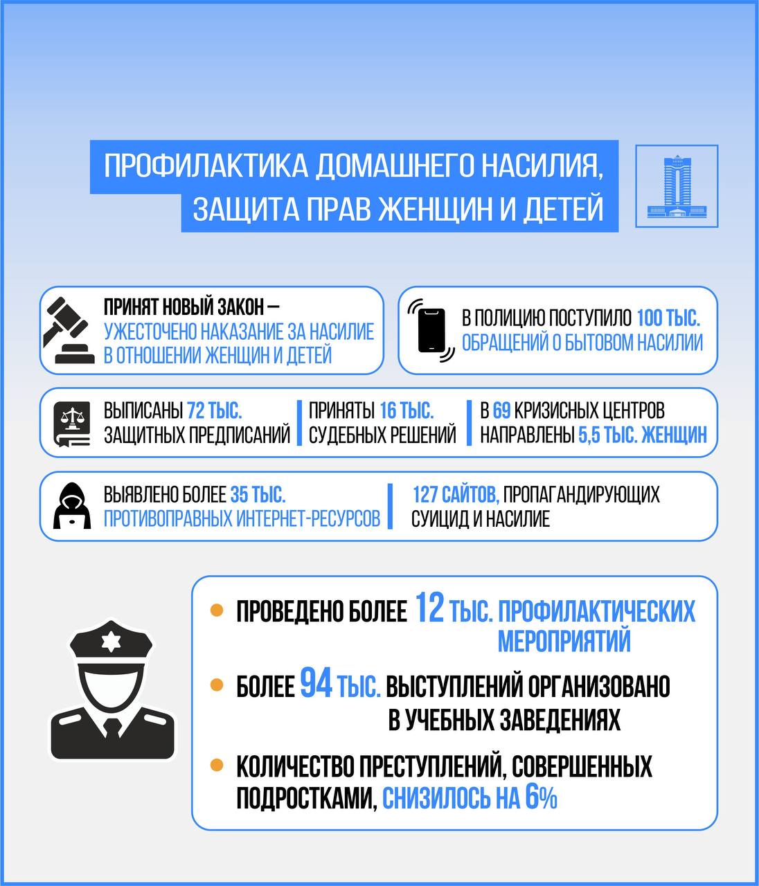 ♀️ В 2024 году в органы внутренних дел поступило около 100 тыс. сообщений о случаях насилия в семьях. МВД выдало 72 тыс. ограничивающих защитных предписаний.