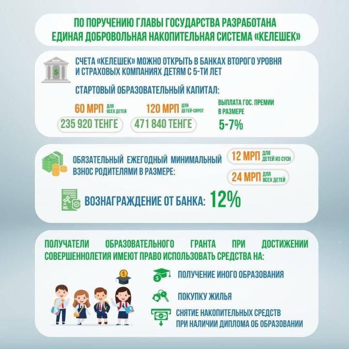 Условием системы «Келешек» является обязательный ежегодный минимальный взнос родителями в размере не менее 12 МРП.
