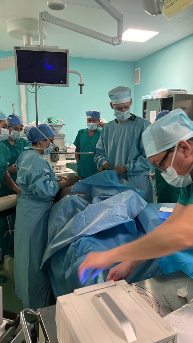 Приглашенные российские эксперты — доктор медицинских наук, заведующий отделением ультразвуковой и функциональной диагностики Кирилл Костюков и кандидат медицинских наук, акушер-гинеколог, специалист по патологиям беременности Виктория Сакало Национального медицинского исследовательского центра акушерства, гинекологии и перинатологии имени академика В.И. Кулакова (г. Москва, Россия) вместе с командой UMC выполнили с ювелирной точностью коррекцию осложнений монохориальной многоплодной беременности: фето-фетального трансфузионного синдрома и синдрома обратной артериальной перфузии.