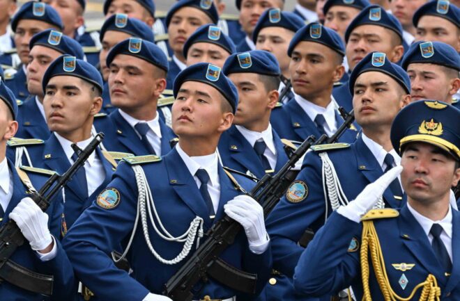 «Героические традиции казахского народа передаются от отца к сыну на протяжении веков. Наши легендарные батыры во времена Золотой Орды и Казахского ханства сберегли бескрайние земли Великой степи для будущих поколений. Сегодня их потомки зорко стоят на страже безопасности Казахстана. Наша доблестная армия – оплот Независимости страны. Казахстанские воины стойко защищают территориальную целостность государства, спокойствие и мирную жизнь граждан. Вооруженные Силы Казахстана вносят вклад в поддержание международного мира и стабильности. Наши воины успешно участвуют в миротворческих миссиях Организации Объединенных Наций. Это свидетельствует о высоком доверии мирового сообщества к казахстанской армии».