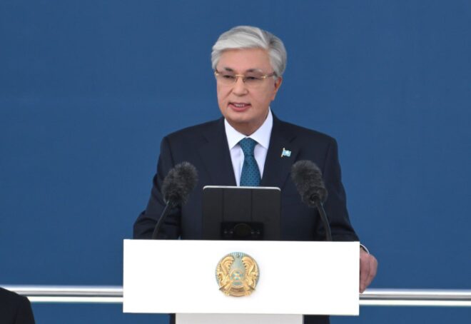 Президент Касым-Жомарт Токаев поздравил казахстанцев на параде в Астане, посвященному 80-летию Победы в Великой Отечественной войне, передает Tengrinews.kz.