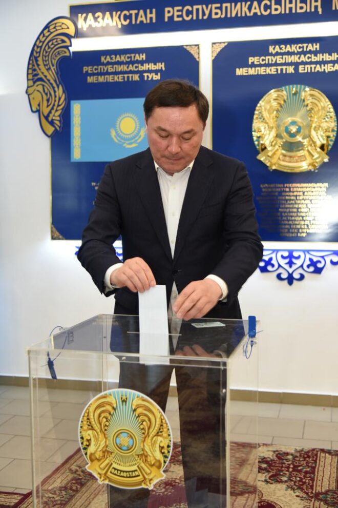 На своем избирательном участке проголосовал аким Акмолинской области Ермек Маржикпаев.