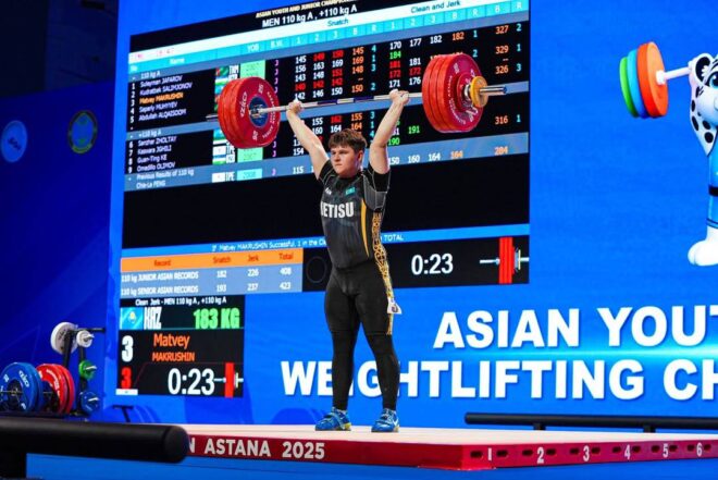 Санжар Жолтай завоевал «бронзу» в весовой категории свыше 110 кг. Его итоговый результат составил 340 кг (155+185).