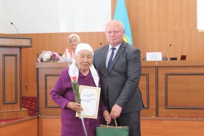 К проведению торжественного мероприятия с большим уважением отнеслось руководство района. В своем поздравлении аким района Курушин Юрий Викторович тепло поздравил ветеранов с юбилейной датой и поблагодарил их от лица своих коллег за достойный добросовестный труд на благо и процветание нашего государства.